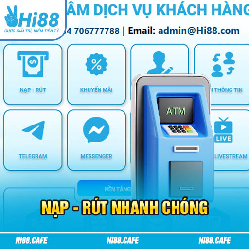 Hi88 hỗ trợ giao dịch tài chính đa phương thức, giúp người chơi nạp và rút tiền dễ dàng chỉ trong vài bước: