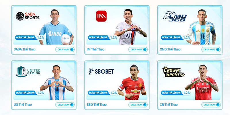 Sảnh thể thao tại Hi88 hội tụ hàng ngàn trận đấu mỗi ngày từ các giải đấu lớn nhỏ trên toàn thế giới. Hi88 hợp tác với CMD368, SABA, SBOBET, những nhà cung cấp thể thao uy tín nhất châu Á, mang đến: